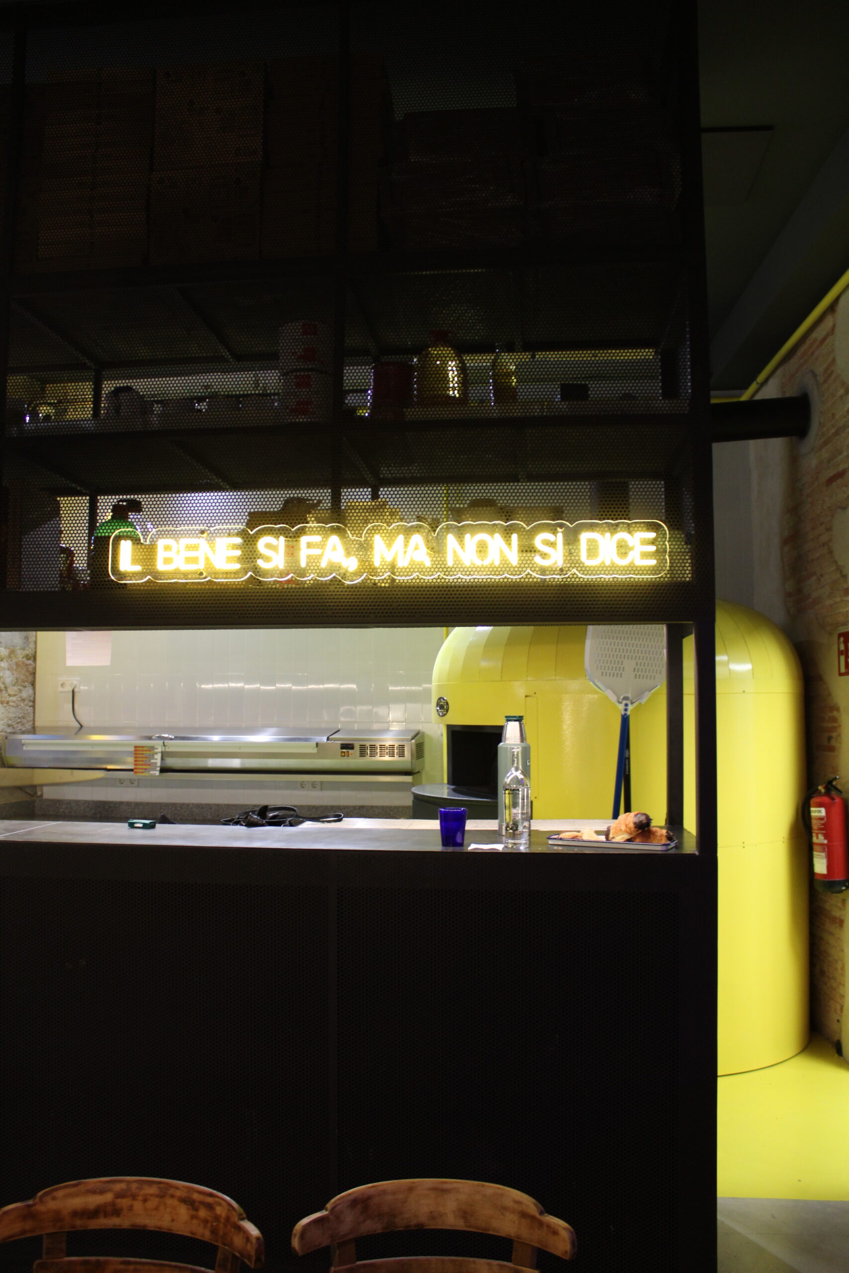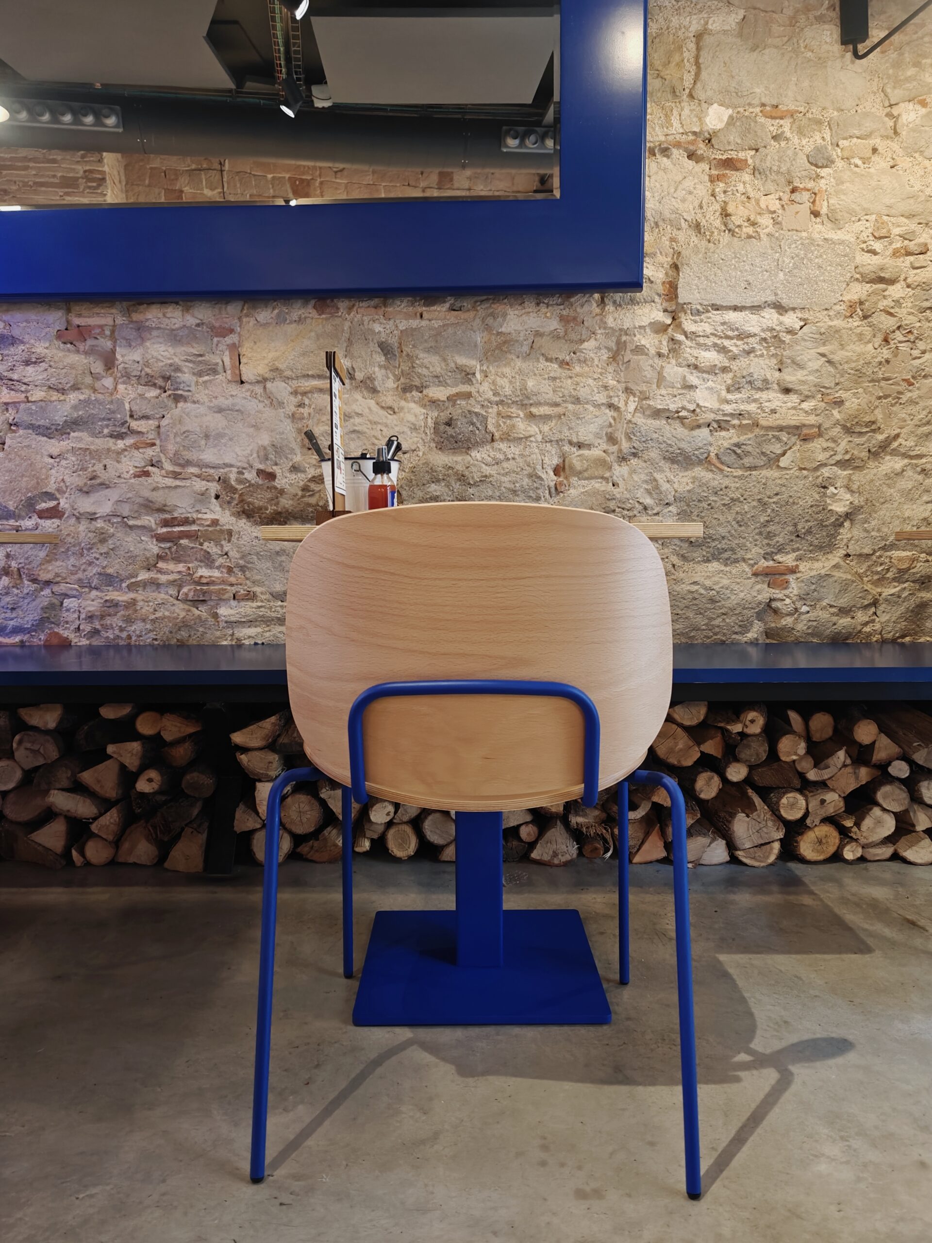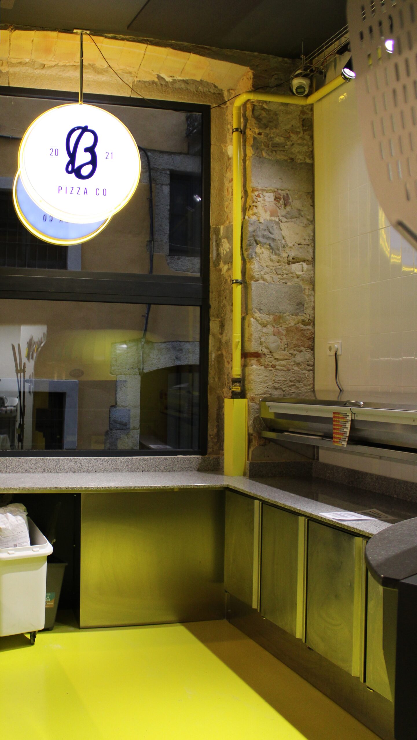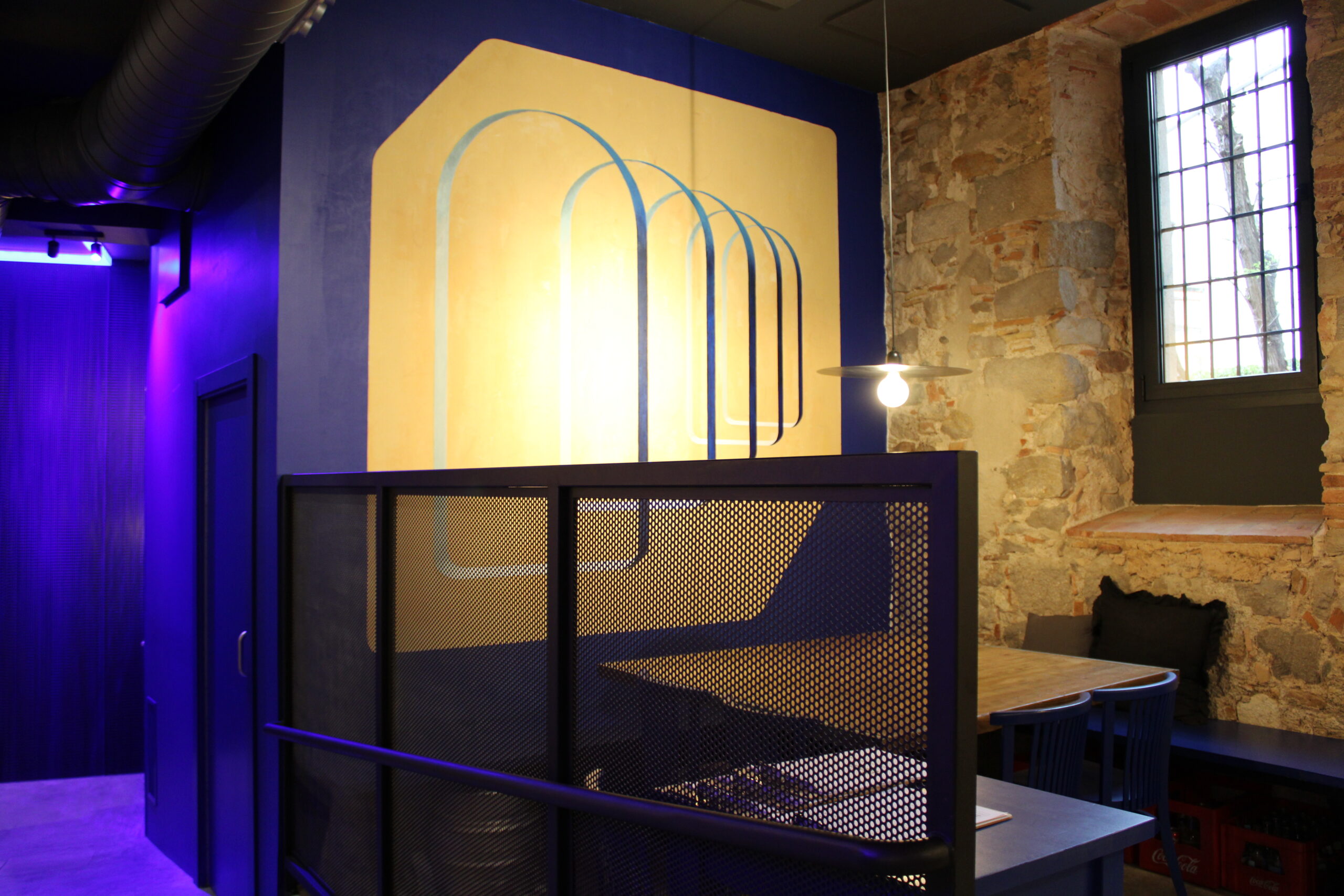 Reforma integral de la pizzeria Bartali. El concepte principal d’aquest disseny va ser girar entorn de la història de Gino Bartali, ciclista guanyador de tres premis del Giro d’Itàlia, també conegut per ajudar al poble jueu, per a això es va valer de la seva bicicleta, on amagava la documentació necessària per a treure’ls d’Itàlia. I així, sota l’aparença de simples entrenaments, portava els papers d’un costat a un altre. Vam decidir utilitzar com a colors corporatius d’aquesta reforma els colors que Gino portava en un dels seus mallots. El blau i el groc són colors complementaris i difícils en l’àmbit del disseny d’interiors, però vam decidir treballar amb el concepte del contrast en tot el restaurant, creant també un espai més informal i amb un estil industrial.