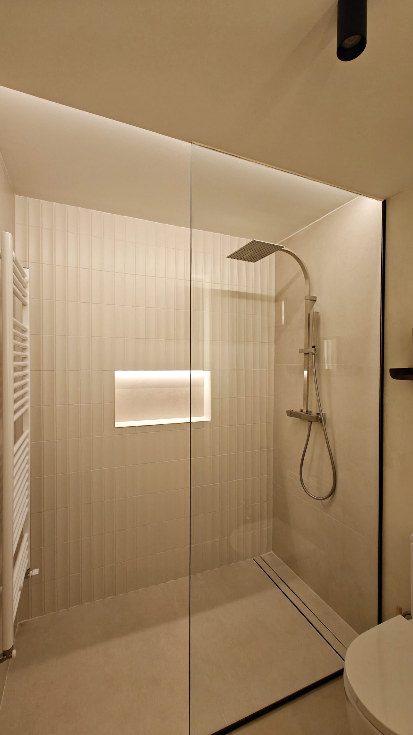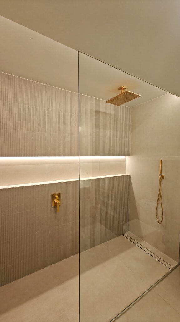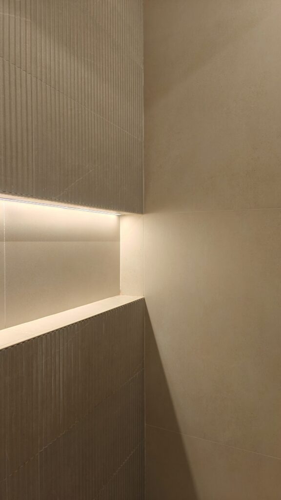 El client desitjava transformar els seus banys en petits santuaris privats, evocant l’atmosfera d’un spa contemporani. El projecte s’ha desenvolupat a partir d’una paleta de tons clars, que amplien visualment l’espai. La il·luminació utilitzada és càlida i estratègicament estudiada per generar una sensació de calma i recolliment.