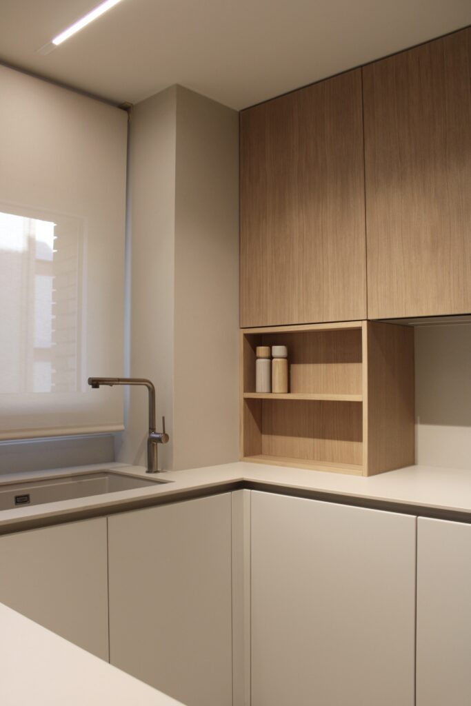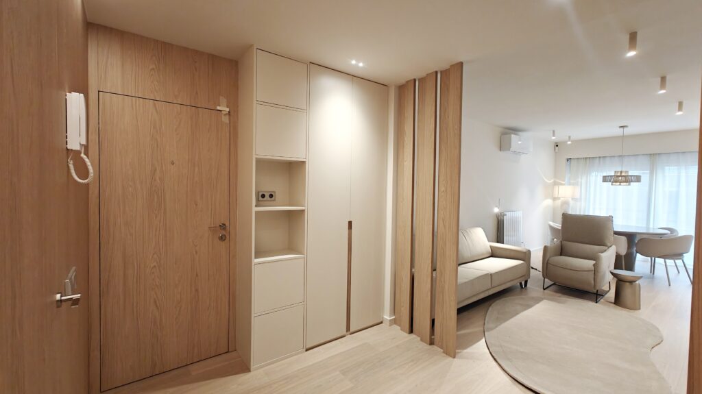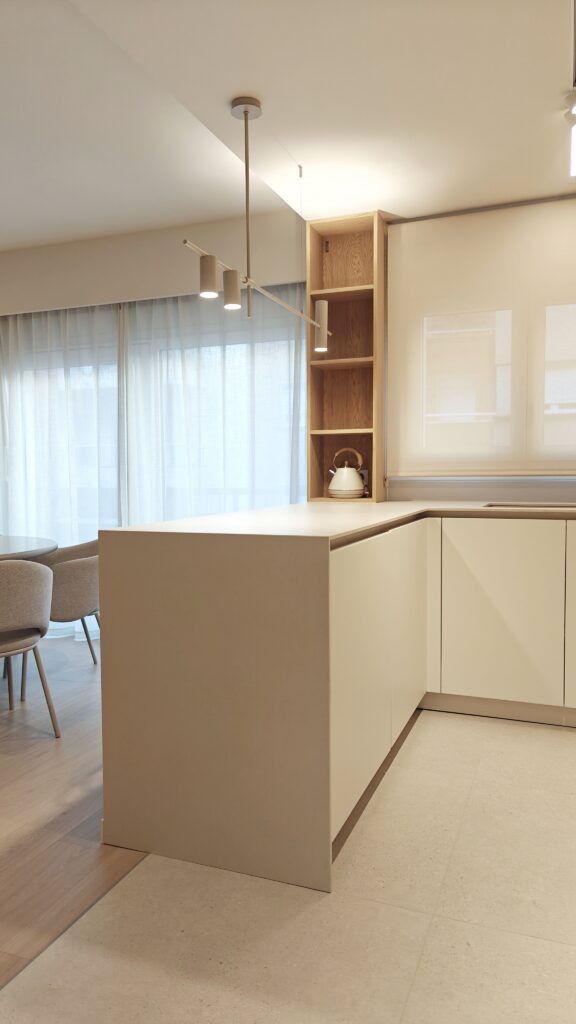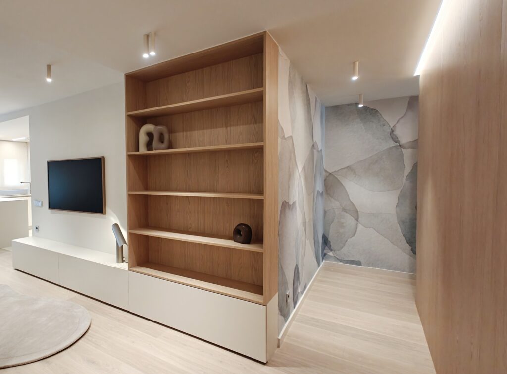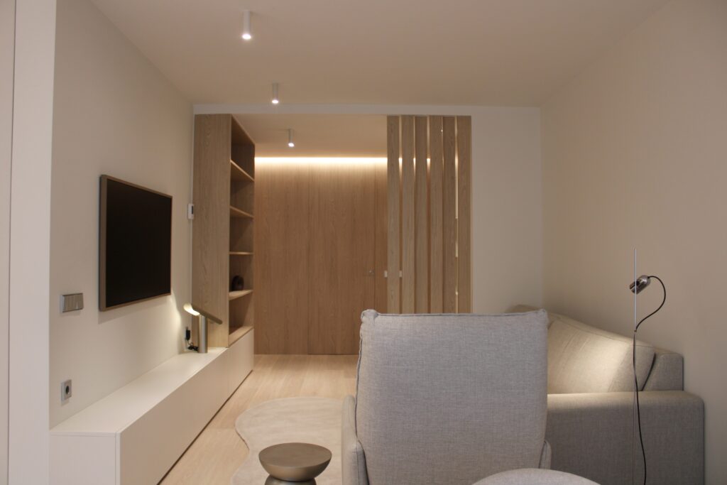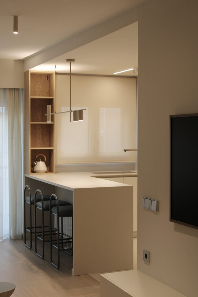Apartament situat al centre de Girona, es tracta d’una refroma integral d’un pis de 100m2. En aquests projecte hem intentat seguir una gama de colors neutres afegint contrast i personalitat a l’espai amb el color blau i el paper de paret.